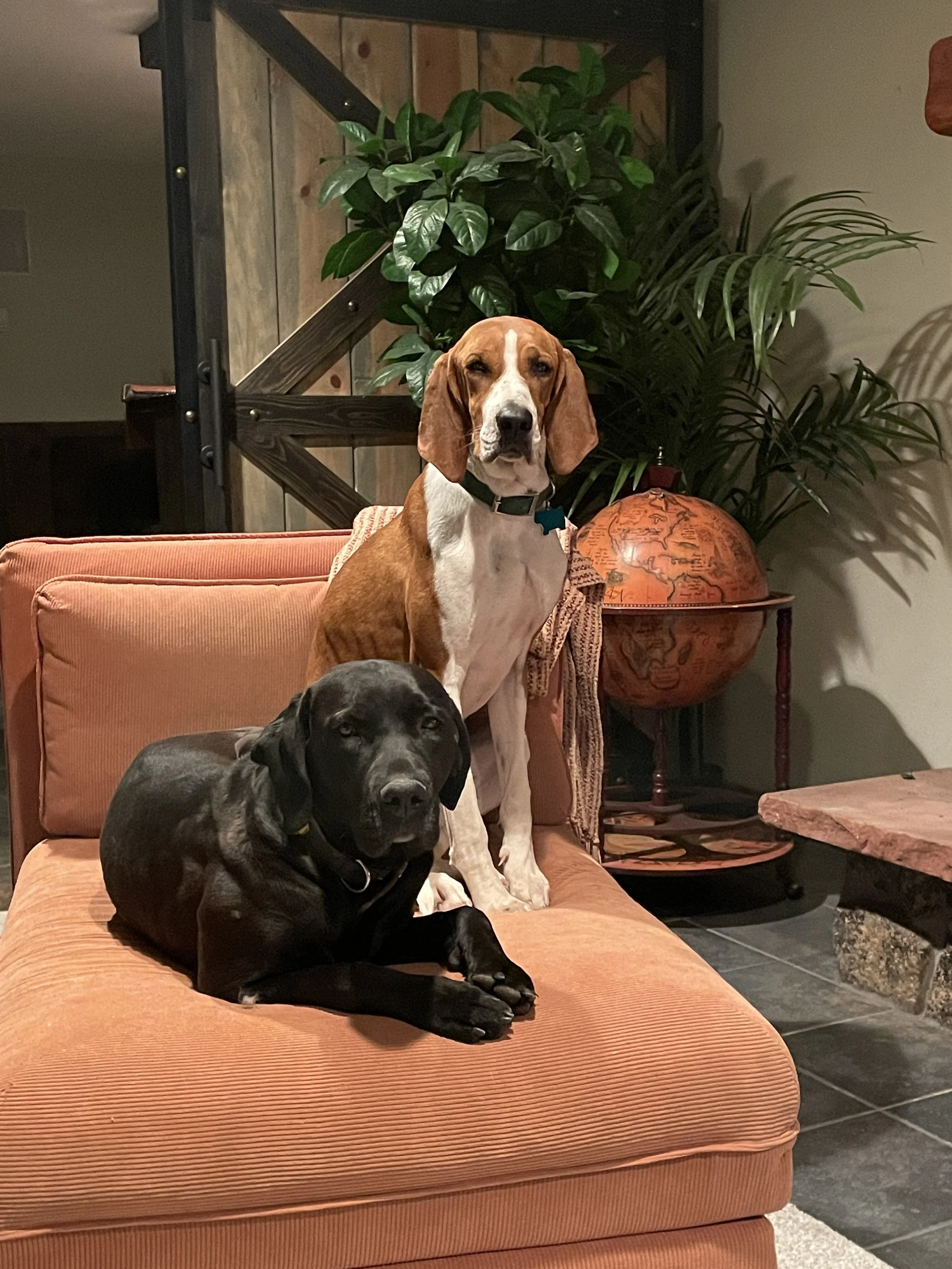 Beasy is easy to spot in the field: sleek and slender, with reddish coloring and crisp white under-markings. She’s a happy, silly girl with a bright spirit—but don’t be fooled. Underneath that playful bounce is a hound who can mean business when it's time to work. She knows her job, and she does it with confidence.