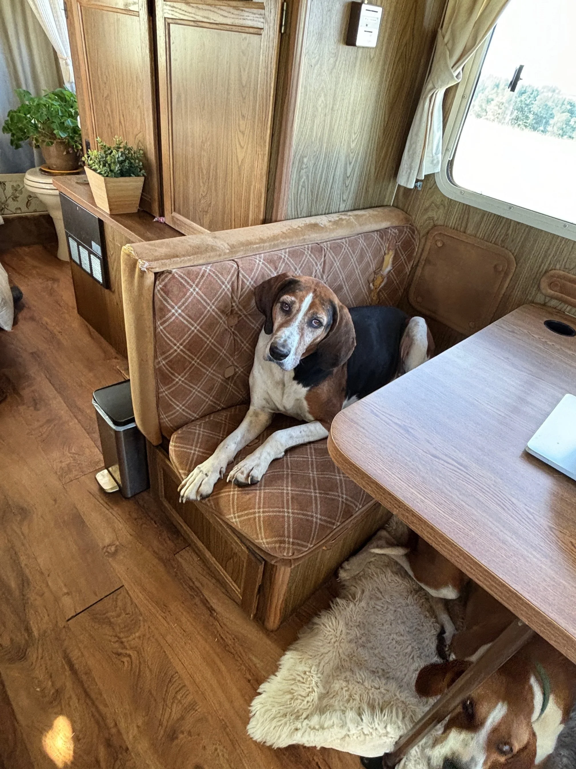 He also enjoys retreating to the quiet of the back hound room with its wall-to-wall futon beds. Warm in winter, cool in summer, and away from the pack’s commotion—it’s Nooner’s version of a spa day.