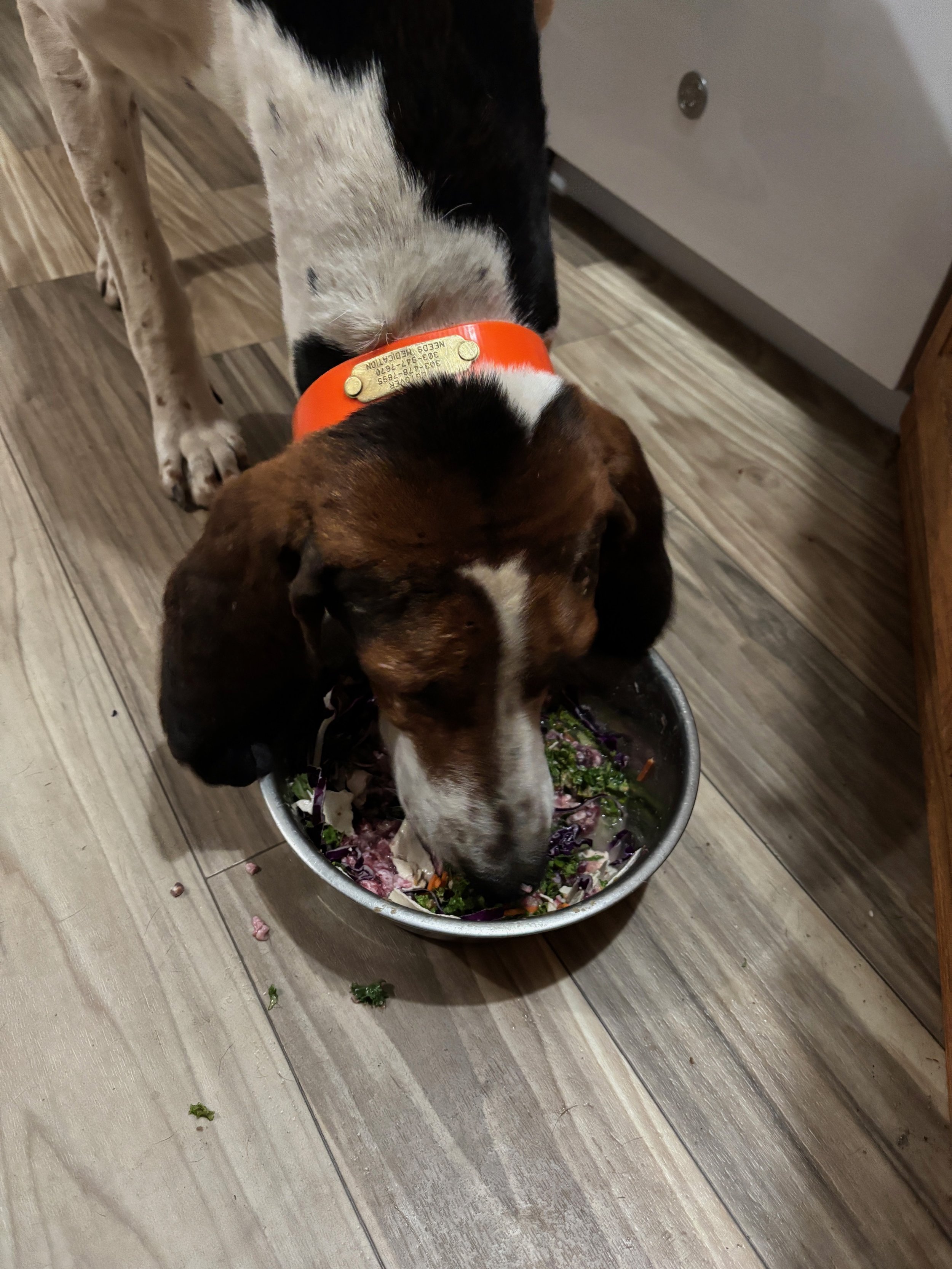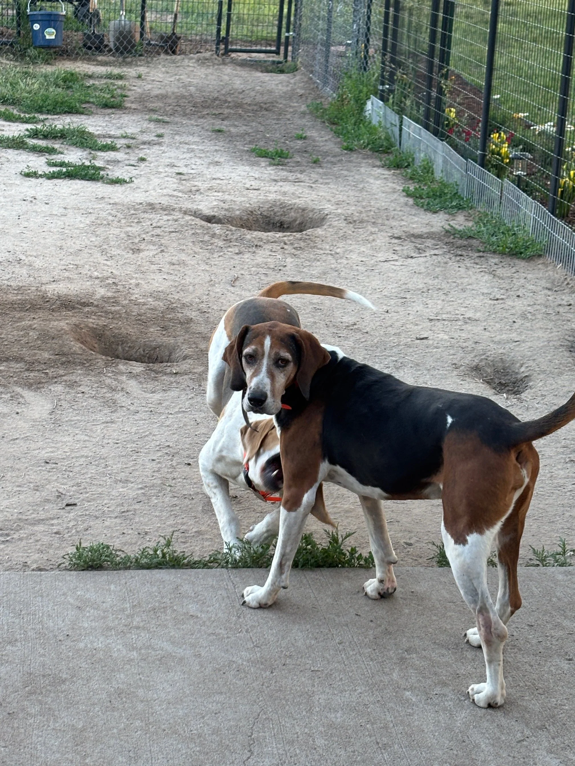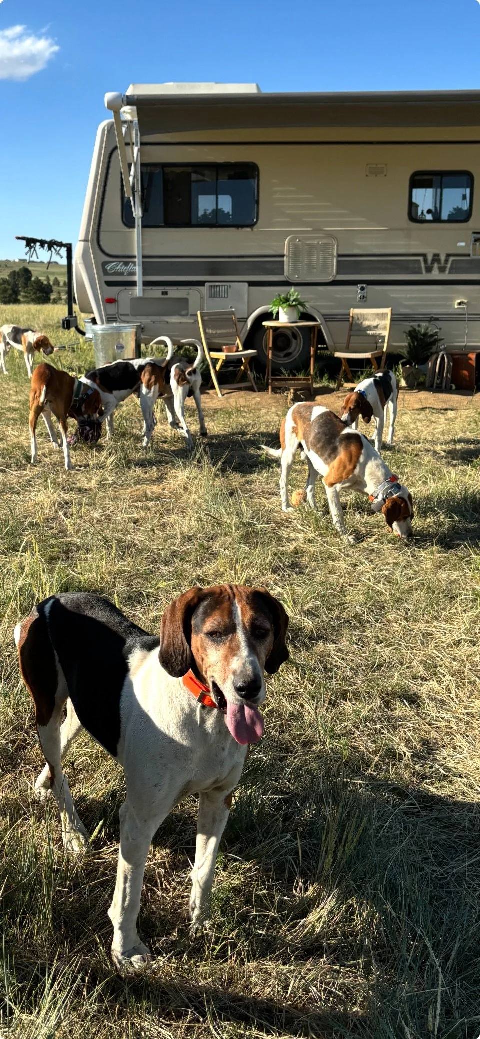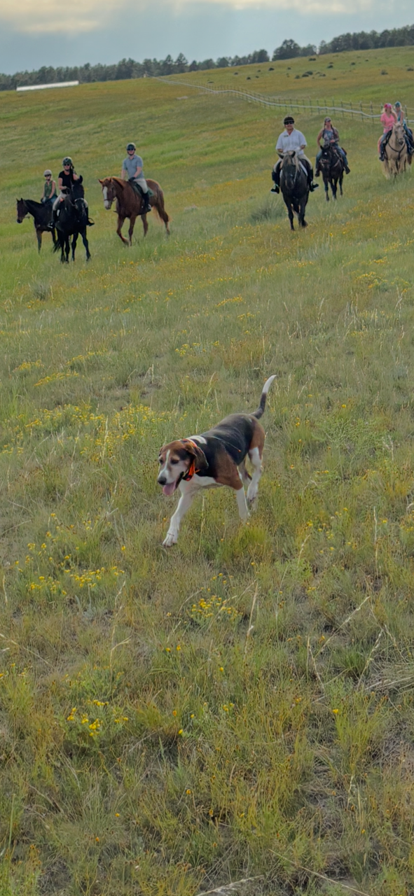 At 9 years old, Nooner is our oldest active hunter—but don’t let his age fool you. This veteran hound has a serious work ethic and one of the best noses in the field. He’s all business when it comes to scenting, and the younger hounds know it. He sets the standard, and they respect him.
