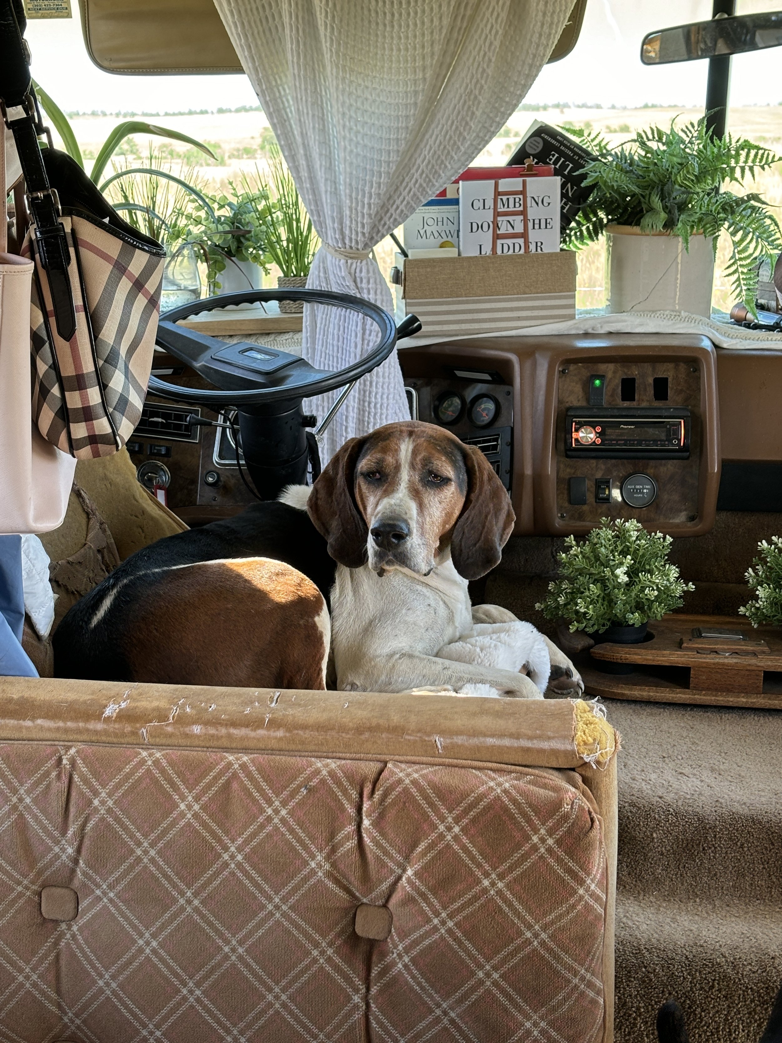 He's also a bit of a character. Nooner is a talker, especially when it’s time for exercise, hunting, or dinner. He barks with purpose, announcing the things that matter most to him. And when he’s not working, he’s got a few clear preferences: a cool pool to lounge in and a private chair to call his own. Fortunately, he now has both.